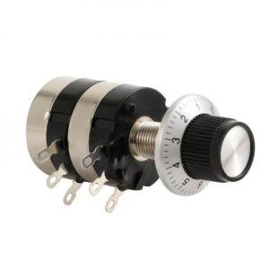The rotating potentiometer is an adjustable electrical resistor, which slides on the resistors by the wiper, and obtains the output voltage associated with the input voltage in the circuit.